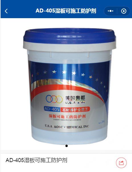 濕板可施工的防護(hù)劑只是奧都化學(xué)中的一種產(chǎn)品,我們有四十幾種的產(chǎn)品,木瑪麗染色劑,黃金麻摧銹劑,增白劑,增光劑,清洗劑,除銹劑,潤色劑,著色劑,染色劑,脫膠劑,除霉劑,防水背膠,啡網(wǎng)油等等石材化學(xué)養(yǎng)護(hù)劑材料,咨詢電話:13105074303