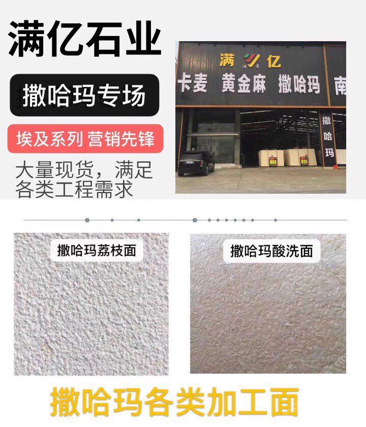 福建省南安市水頭鎮(zhèn)滿億石業(yè)有限公司,公司位于福山工業(yè)區(qū),主營:撒哈瑪1.5 1.8 2.3 2.8 3.0 5.0~~~ 各規(guī)格厚度?專場(chǎng)撒哈瑪,歡迎考察!