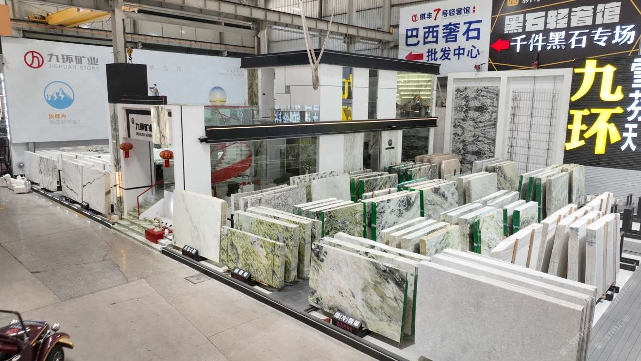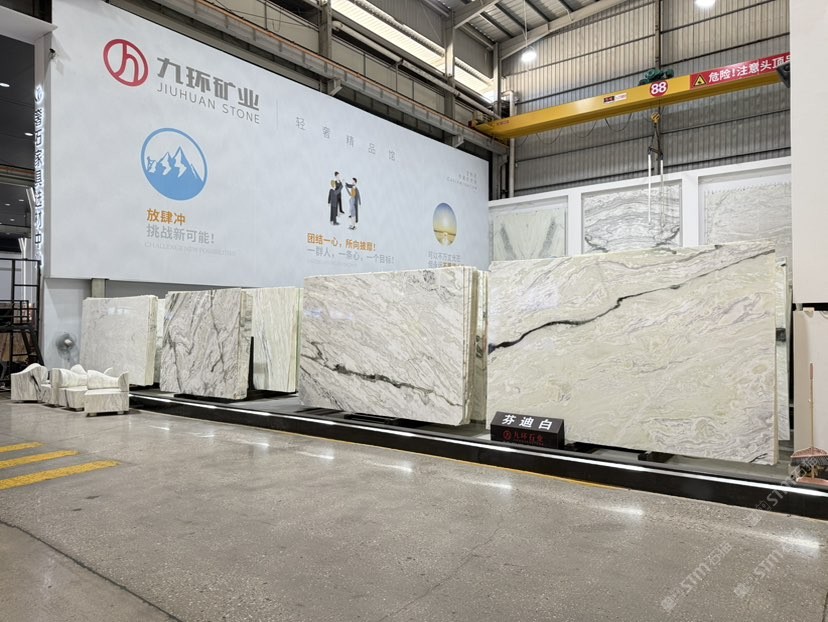公司創(chuàng)建初期駐點于東升大板市場,隨著市場需求,不斷進行戰(zhàn)略布局,2016年駐點高時大板市場,2017年駐點藝興大板市場,同時期增加澳磊門店,2018年,九環(huán)增加遠達專場,擁有數(shù)百個架子位,憑借優(yōu)質(zhì)服務(wù)深受客戶認可與信賴。2019年,九環(huán)于順盛增加加工點,主要生產(chǎn)“水晶木紋”,年產(chǎn)量達15萬平方米。該年底順勢而上,增加均利廠、新寰宇廠及振南廠三個石材加工廠,并不斷拓寬市場品類,由原先單一的“水晶木紋”,又增拓“印度藍金沙”與“土耳其星月白”兩個大理石品種,年產(chǎn)量接近30萬平方米,公司經(jīng)營得到進一步優(yōu)化。2020年九環(huán)石業(yè)進軍南翼點,新增“卡索灰”及“古堡藍”兩個大理石品種,擁有自己的大型礦山開采權(quán),自主開采銷售,產(chǎn)品種類大幅度增加,業(yè)務(wù)領(lǐng)域進一步拓展。2021年至今,九環(huán)石業(yè)新增澳盛點,新增品種“卡地亞灰”包礦。至此,九環(huán)石業(yè)在“世界石都”水頭戰(zhàn)略版圖囊括了澳盛、新寰宇、東升、遠達等駐點,具備良好的區(qū)位優(yōu)勢,發(fā)揮著重要的協(xié)同效應(yīng)。\