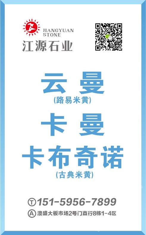江源石業(yè)主營:白玉蘭、西西里灰、云曼、路易、卡曼、古典米黃(卡布奇諾)、勞力士灰(新月亮谷)、阿里灰(星耀灰)、伊利諾灰、云多拉灰…超大量供應精品現貨,任您挑選,趕緊搶購吧! 公司常年大量備貨:大板8萬平方以上! 荒料5000噸以上!常年備有各種厚板1.6公分、1.8公分、2公分、3公分、3.5公分現貨! 銷售點:澳盛大板市場2號門8棟1-4區(qū),新成信2號門A8-10區(qū),官橋恒升、勝牌大理石廠 聯系人:呂小姐15159567899 林先生 15959567865