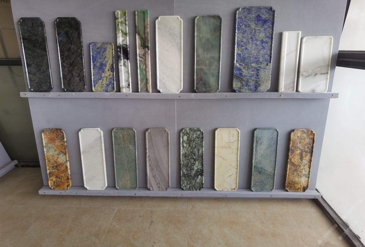 中國水頭國際石材城 奢石家具廠鏡面封釉工藝源頭廠家高端定制茶盤 干泡臺 濕泡茶盤 邊幾 餐桌 茶桌 五金底座搭配15710666636