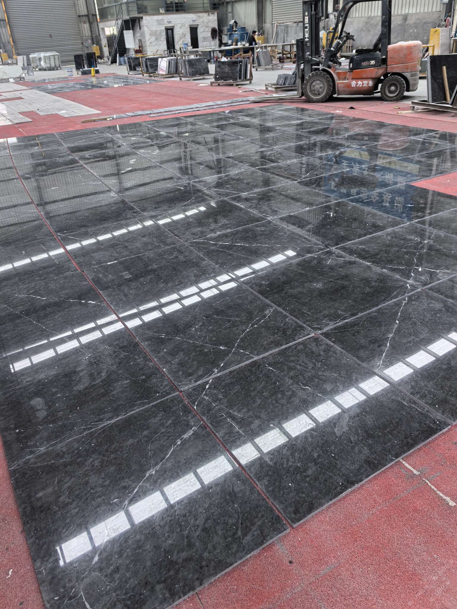 工廠位于在南安水頭鎮(zhèn),占地3萬(wàn)平方米,工業(yè)廠房建筑面積2萬(wàn)平方米。分設(shè)拉鋸、補(bǔ)膠、磨拋、介板、板材打磨、工藝、 工藝打磨等車間,擁有先進(jìn)的石材加工設(shè)備80多臺(tái)(套),每年可生產(chǎn)大理石大板60萬(wàn)平方米、工程板15萬(wàn)平方米、弧板3000平方米及各類花線5000米。