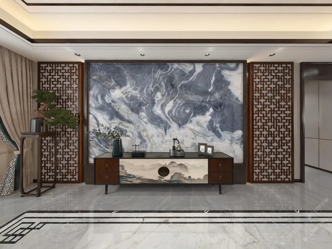 發(fā)布信息: 客廳背景墻采用的雲玖 渲染出濃郁的東方水墨意象 將山水之景融于其中 勾勒出縹緲起伏之景 仿佛窺見雨過天青后 這一座深宅殷切卻澄澈的期盼 盼君歸來