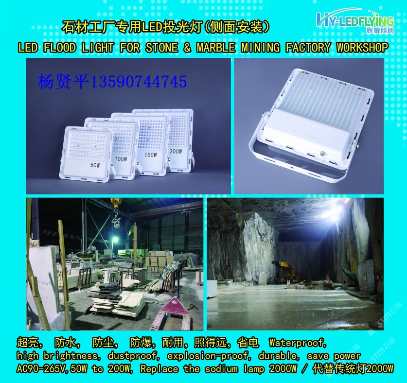 發(fā)布信息: 石材工廠和車間專用led投光燈,200瓦led可以代替3000瓦傳統(tǒng)燈,節(jié)能省電,質保3-5年,防水,防爆,防塵,高亮度,楊賢平13590744745