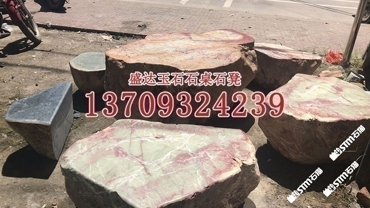 天然玉石石桌椅石凳大理石坐凳公園擺件玉石整塊石