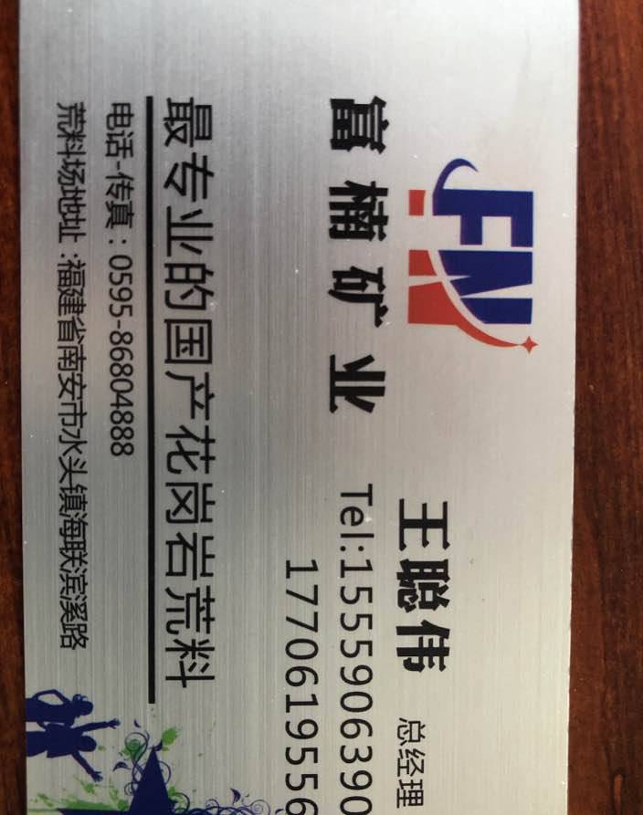 富楠礦業(yè) 聯(lián)系人:王先生    155****3900 查看 0595-****4888 查看 主營(yíng)范圍: 礦山、荒料、 企業(yè)地址:福建泉州南安市海聯(lián)濱溪路