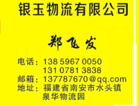 發(fā)布信息: 福建水頭康利物流承接,福建---全國各地(整車 零擔)和大件貨物運輸。本公司自有車隊,價格合理,隨叫隨到,天天發(fā)車,歡迎來電咨詢!