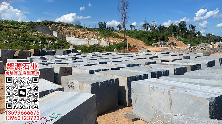 柬埔寨芝麻黑石材礦山直銷(xiāo)荒料充足墓碑石工程板路沿石