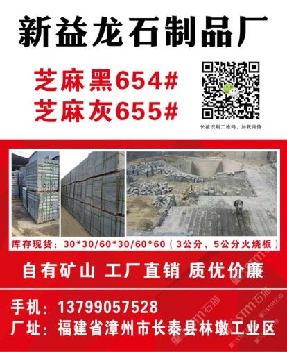 發(fā)布信息: 長(zhǎng)泰縣新益龍石制品廠位于“中國(guó)石材g654石材生產(chǎn)基地”——福建省漳州市長(zhǎng)泰縣林墩工業(yè)區(qū)。本廠集礦山開(kāi)采, 石材加工,工程訂單及進(jìn)出口貿(mào)易于一體;擁有成套先進(jìn)的石材設(shè)備,掌握先進(jìn)的石材加工技術(shù),嚴(yán)格 控制每道生產(chǎn)工序,努力做到以的生產(chǎn)成本生產(chǎn)出能夠讓客戶滿意的產(chǎn)品,且供貨及時(shí),價(jià)格優(yōu)惠 ,能承接大數(shù)量的定單。經(jīng)過(guò)幾年發(fā)展,本廠擁有g(shù)654礦山,專(zhuān)業(yè)生產(chǎn)、加工國(guó)內(nèi)外花崗巖板材。 主營(yíng):芝麻黑g654 兼營(yíng):芝麻灰g655、芝麻白g623、灰麻g688、黃銹石g682等花崗巖品種板材及各種異形;加工方式多樣化:磨光板、毛板、厚板 、薄板、規(guī)格板、火燒板、地鋪石、小方塊、自然板、拉絲板、洗衣板、染板、菠蘿面、機(jī)切板、大板 、荔枝面、路沿石、臺(tái)面板、拋光板、線條、盲人石、滾石及各種建筑工程配套用石的生產(chǎn)、加工和銷(xiāo) 售。產(chǎn)品不僅暢銷(xiāo)國(guó)內(nèi)各大城市,還遠(yuǎn)銷(xiāo)到美國(guó),加拿大,英國(guó),韓國(guó),香港,臺(tái)灣等國(guó)家和地區(qū)。 新益龍石業(yè)以“質(zhì)量為本、服務(wù)至上、信譽(yù),客戶”為經(jīng)營(yíng)理念,真誠(chéng)期待著與您合作,攜手共 創(chuàng)雙贏,共享石材業(yè)輝煌明天。竭誠(chéng)歡迎國(guó)內(nèi)外廣大朋友來(lái)人來(lái)函洽談業(yè)務(wù),相互合作,共同發(fā)展! 洽談熱線:13799057528(連)