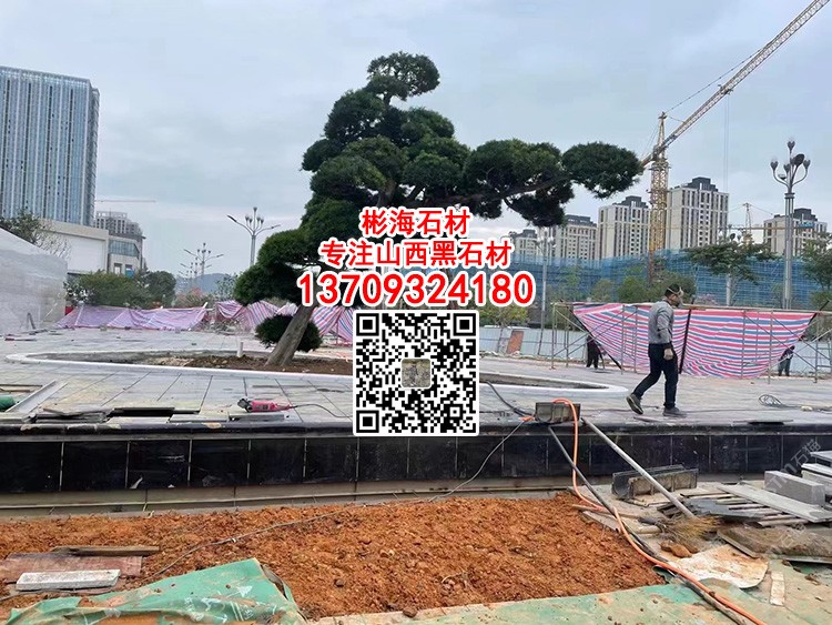 印度黑金沙廣場噴泉水池水景工程黑金砂石材水景景觀石
