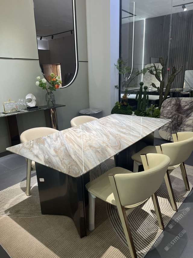 實木結合五金奢石餐桌:意大利威尼斯棕#奢石家居中心
