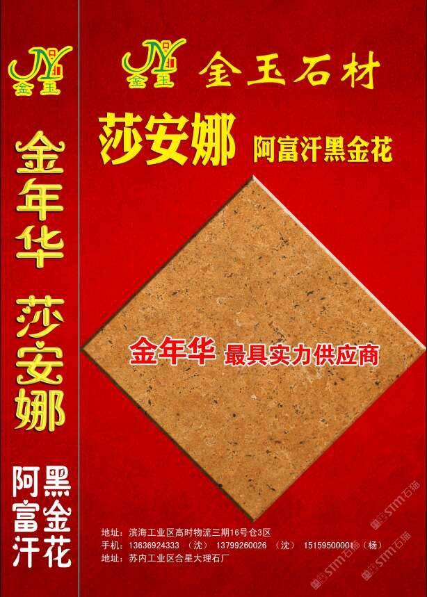 金玉石材 聯(lián)系人:沈小姐    136****4333 查看 手機(jī)號(hào)碼:無(wú) 主營(yíng)范圍: 大板批發(fā)、 企業(yè)地址:福建南安高時(shí)8號(hào)館7號(hào)倉(cāng)2區(qū)