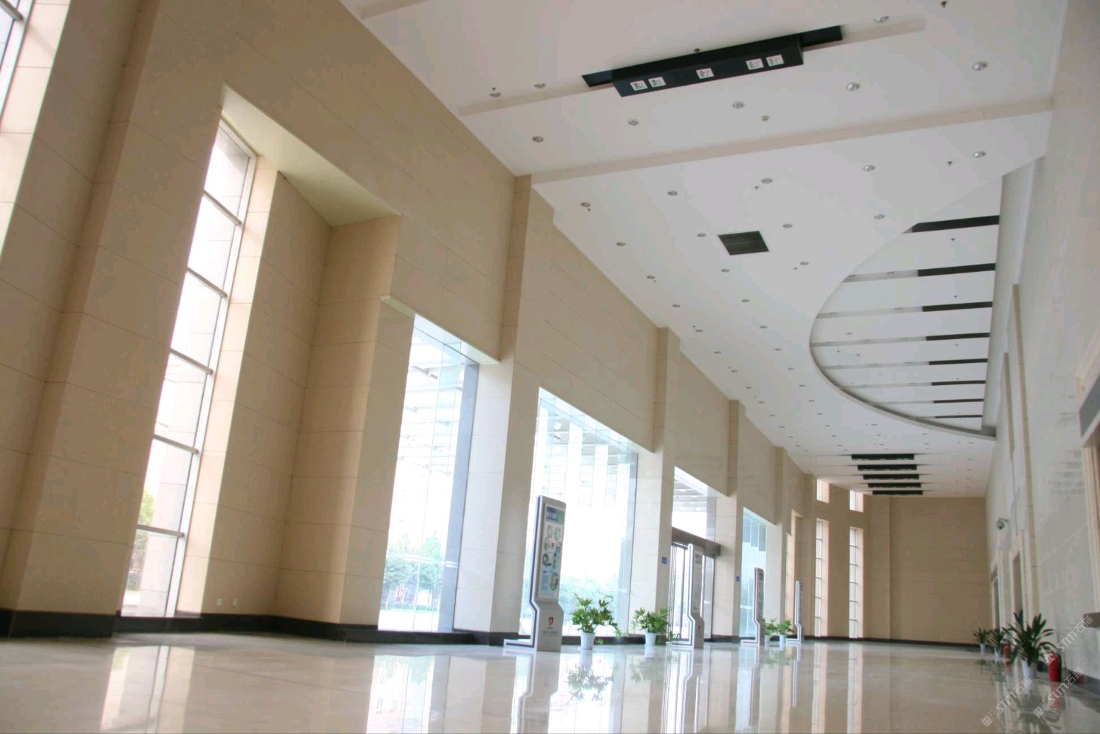 產(chǎn)品應(yīng)用于醫(yī)院一樓大廳墻面、地面,明亮干凈,密度高,易清潔。整體合諧自然。