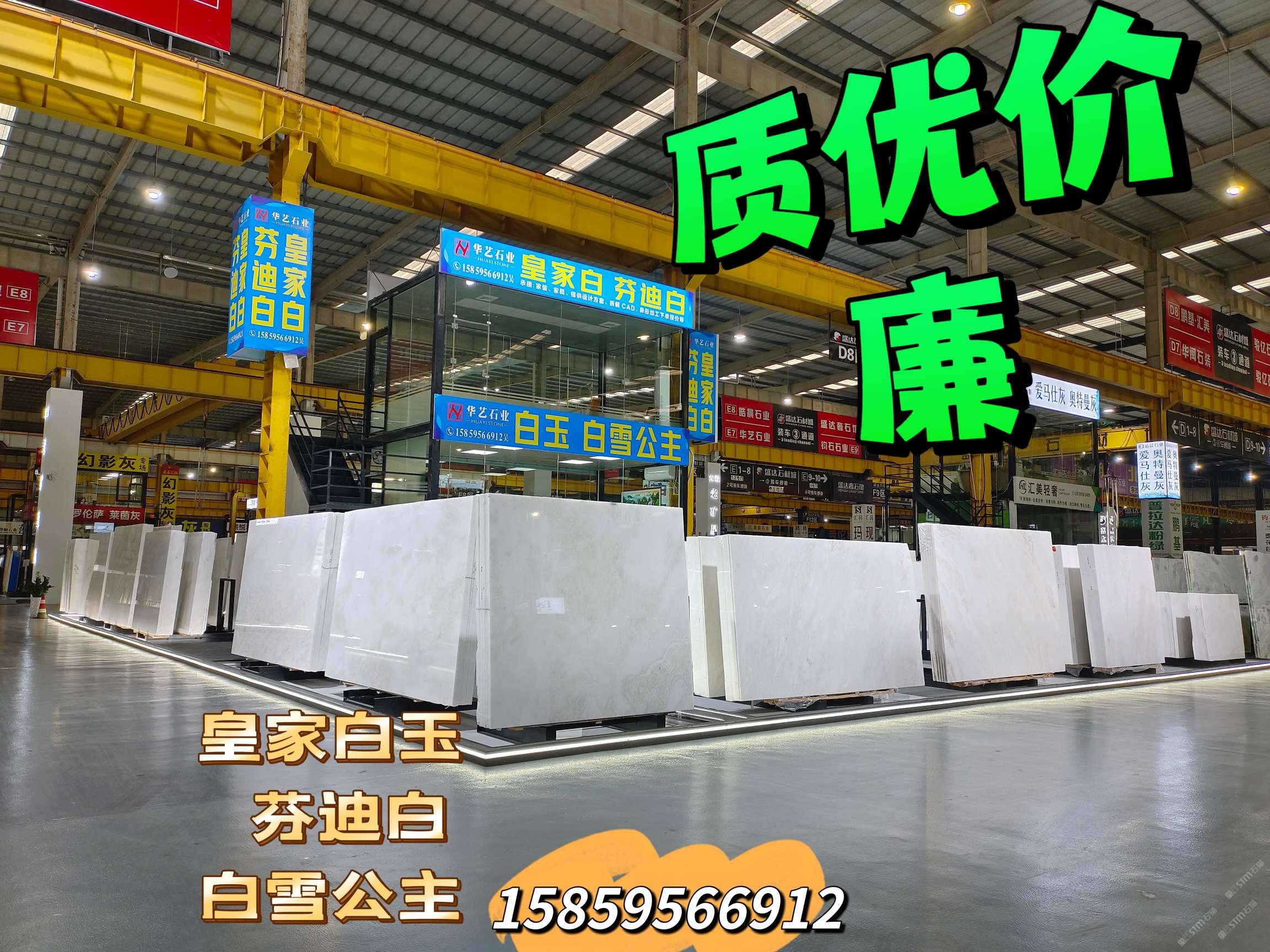 盛達市場華藝石業(yè) 聯(lián)系人:吳    158****6912 查看 手機號碼:無 主營范圍: 荒料、大板批發(fā)、礦山、石材交易市場、大理石加工、異型加工、石材雕刻、水刀拼花、薄板復(fù)合板加工、 企業(yè)地址:福建泉州南安市盛達石材城E5