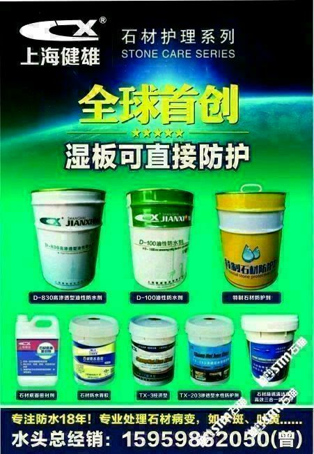 發(fā)布信息: 需要做防水的找我哦!主營(yíng):水性防水劑,油性防護(hù)劑(濕板直接防水,質(zhì)量超級(jí)好?。◢弾r除銹劑(超級(jí)好用,不會(huì)再反銹),大理石除黃劑,花崗巖增色增艷劑!水斑劑等等!咨詢電話??15959862050