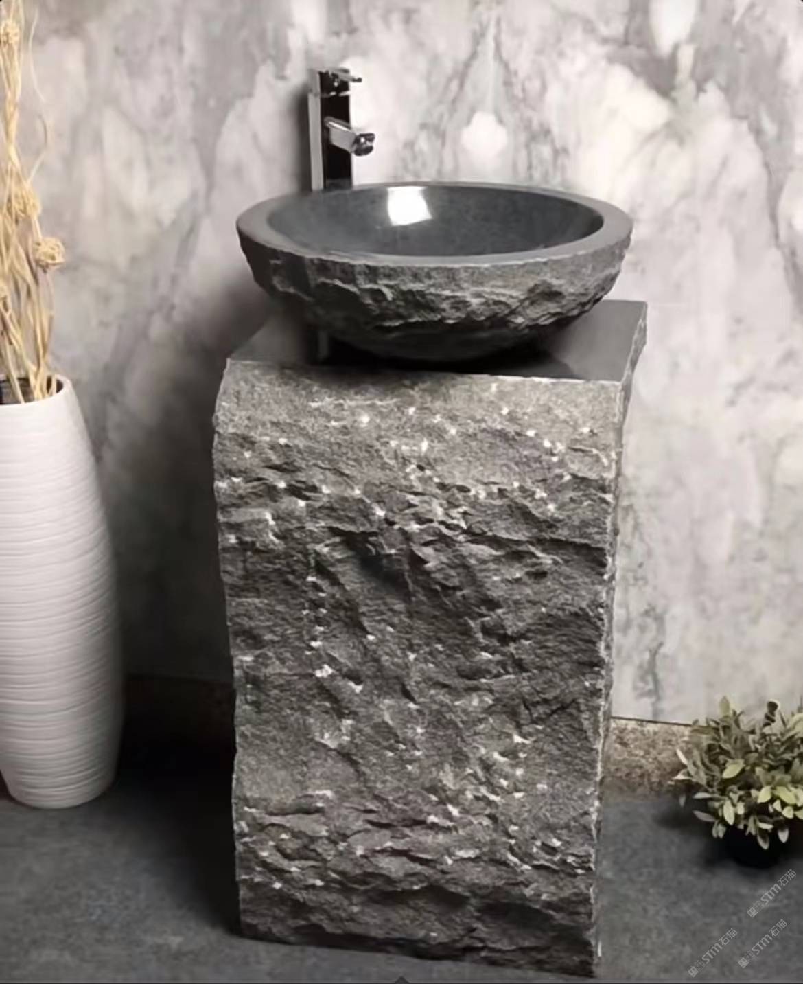 描述:石材立柱盆,具有不同形狀和尺寸的獨立元素,與衛(wèi)浴產(chǎn)品結(jié)合在一起。