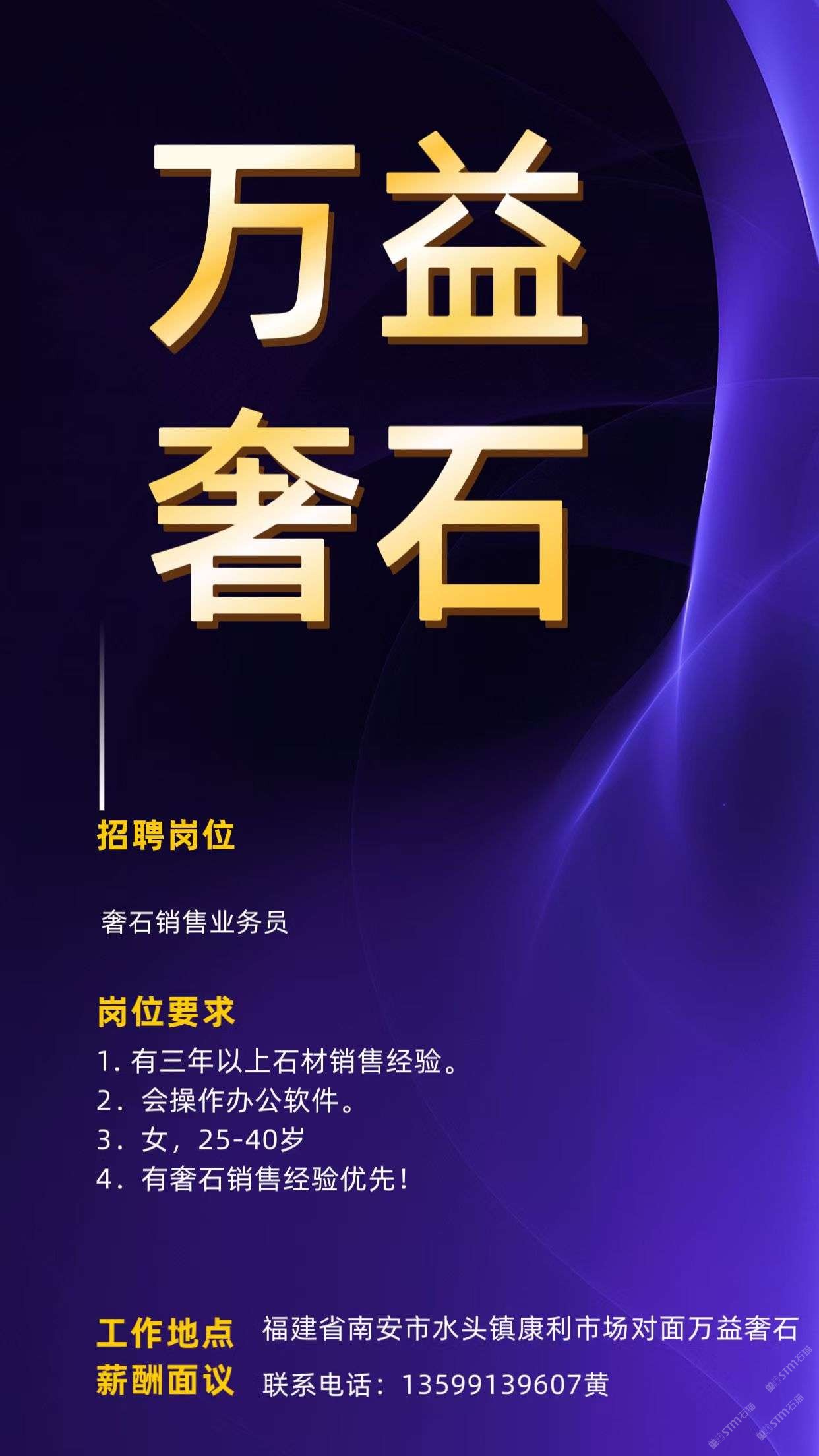 招聘:奢石銷售業(yè)務(wù)員